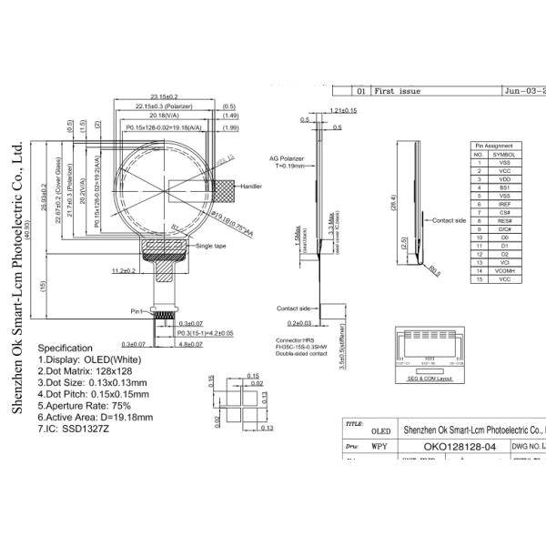 OK Smart oled isis the graphic OLED display module made of 128x128 individual blue OLED pixels,diagonal is only 0.75 inch.The controller ic SSD13272Z, communicates via 4-wire serial spi interface only,thanks to controller's built-in voltage generation,only a single 2.8V power supply is needed. Because the display makes its own light, no backlight is required. This reduces the power required to run the OLED and is why the display has such high contrast,extremely wide viewing angle and extremely operating temperature.The fpc is the soldering type,no need connector.Just solder the FPC on your PCB directly.